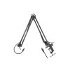 Brazo de Soporte de Estudio Ajustable: Este brazo permite una rotación completa de 360° y se fija con seguridad en escritorios, mesas y otras superficies planas de hasta 55 mm de grosor. Incluye un cable USB (tipo B a tipo B) de 3 m que garantiza una conexión sin problemas. Además, su organización interna del cable mantiene tu espacio de trabajo limpio.