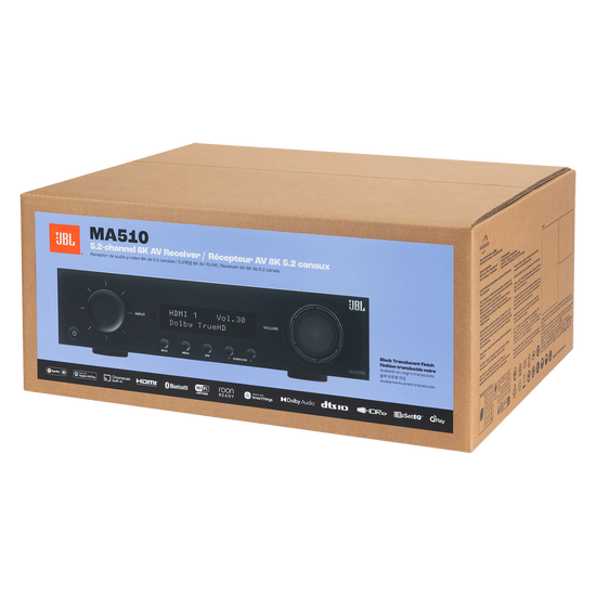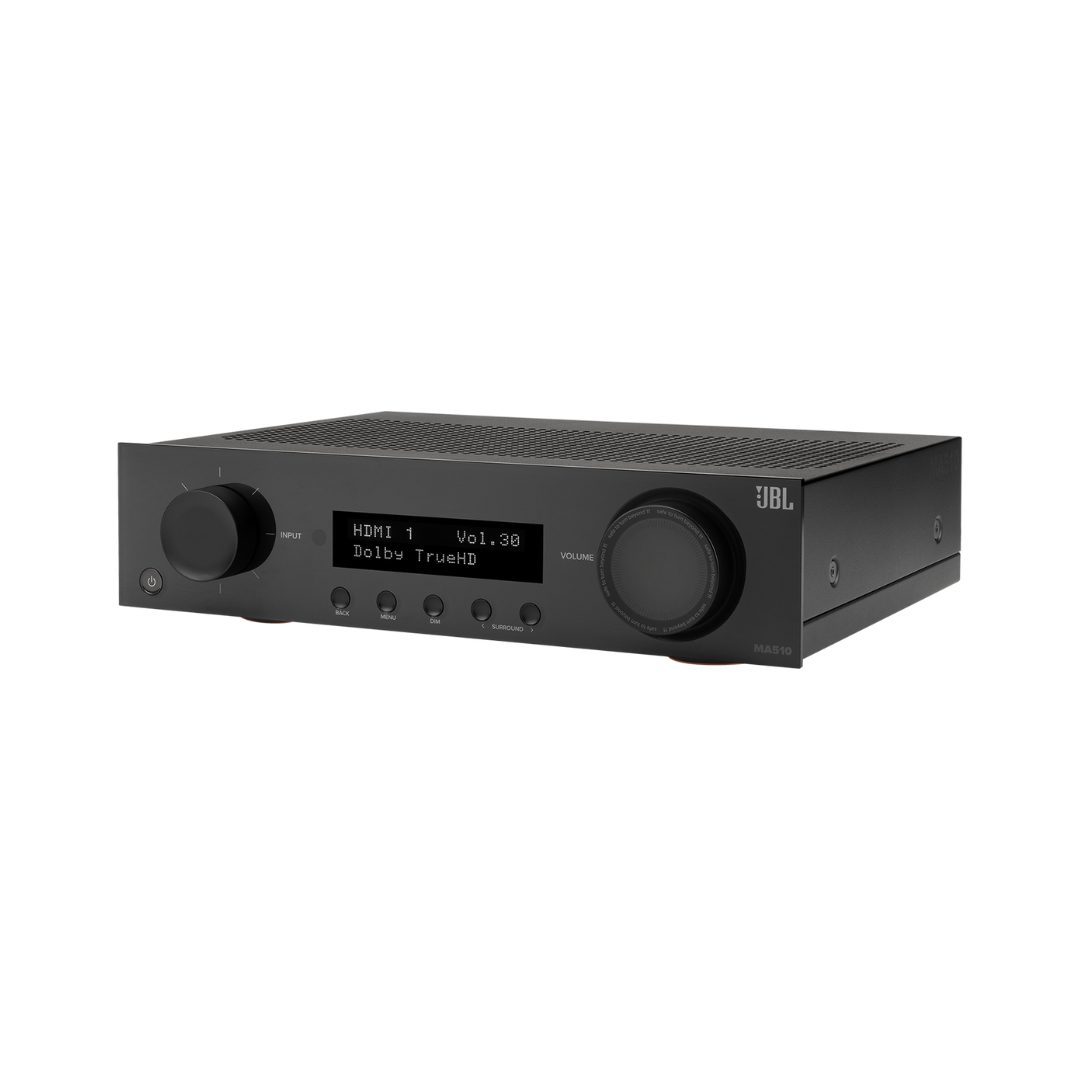 El JBL MA510 es un receptor AV con especificaciones 8K HDMI que ofrece un realismo espectacular para disfrutar de la experiencia de home cinema superior. Integra sin problemas tu Smart TV o proyector con 4 entradas HDMI y 1 salida, además de eARC. Con la decodificación nativa de 5 canales de los formatos Dolby y DTS, el MA510 ofrece experiencias cinematográficas increíbles. Con auténtica pasión por la música y las películas, su diseño ofrece una alta fidelidad genuina. Se puede acceder a contenido musical adicional a través de Bluetooth y el streaming de red. El MA510 cuenta con cinco canales de amplificación de clase D de bajo ruido para disfrutar de una potencia del mundo real en todos los canales.