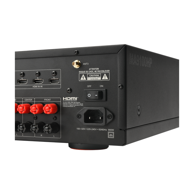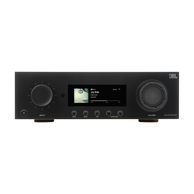El JBL MA9100HP es un receptor AV de alto rendimiento que ofrece un realismo impresionante con las últimas especificaciones 8K HDMI y decodificación nativa de 9 canales de audio envolvente de Dolby Atmos y DTS:X para disfrutar de la mejor experiencia de home cinema. Integra sin problemas tu Smart TV o proyector con 6 entradas HDMI y 2 salidas, además de eARC. Con auténtica pasión por la música y las películas, su diseño ofrece una alta fidelidad genuina. El MA9100HP cuenta con nueve canales de amplificación de clase D de bajo ruido para disfrutar de una potencia del mundo real en todos los canales. Además de la entrada de fono Moving Magnet integrada para conectar un tocadiscos, se puede acceder inmediatamente a contenido de música adicional con streaming integrado mediante Apple Airplay2, Google Chromecast y Bluetooth AptX Adaptive. Con un rendimiento de alto nivel, el MA9100HP viene “Dirac Live Ready” para la corrección automática de la sala, lo que garantiza una calidad máxima de sonido, lo que permite a los integradores y usuarios adelantados adaptar y optimizar el sistema a la acústica personal de su entorno. Con una zona de audio y una salida de vídeo HDMI secundarias, el contenido puede estar disponible en una ubicación secundaria. Además de los controles físicos, el MA9100H ofrece un control de IP para la integración de sistemas de control de terceros.