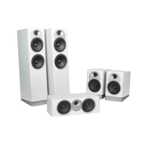 Frecuencias Altas Cristalinas: Un tweeter de 1 pulgada con anillo Faraday de cobre aumenta la sensibilidad y reduce la distorsión no lineal en las frecuencias altas. Fabricados con tela, el tweeter y el sonido envolvente ofrecen características de distorsión excepcionales y un amplio ancho de banda para un sonido detallado y libre de fatiga.